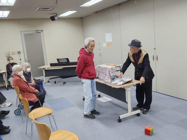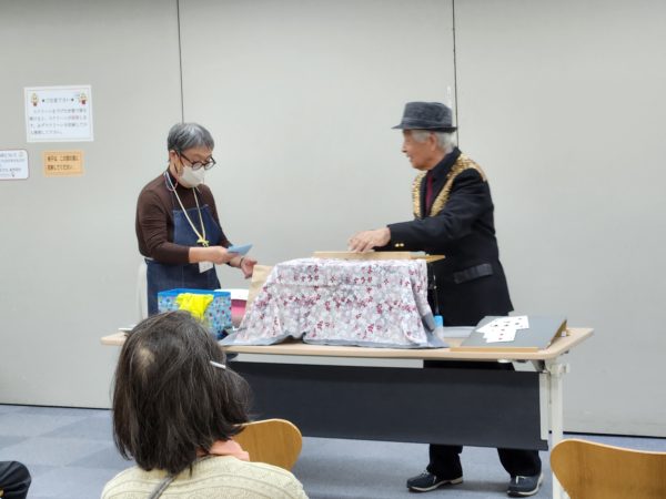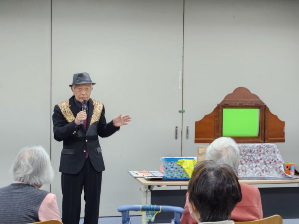つつじお楽しみ会2025年11月 お楽しみ会 2025.12.18 11月11日火曜日、貫井図書館視聴覚室で114回湯ちゃぶお楽しみ会を開催しました。 手作り紙芝居の奥澤さんに、戦後80年の新作をお聞きしました。手品も楽しみました。 歌声交流は、8曲元気に歌いました。 今年最後は、12月9日火曜日、新しくなった中村橋区民センターでヴィオリンコンサート。お待ちしています♪