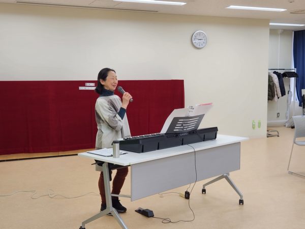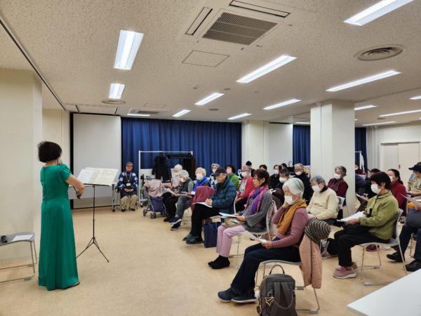 会場も改修工事が終わり、新しい中村橋区民センターで開催。ヴァイオリン演奏でスタート。その後、歌声交流で盛り上がりました。45人の皆さんに楽しんでもらえました。
