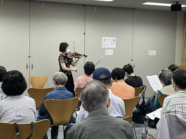 つつじお楽しみ会2025年6月 お楽しみ会 2025.12.18 6月10日、109回湯ちゃぶ、お楽しみ会を開催。 ご近所の伊賀さんに、ヴィオリン演奏をお願いしました。素晴らしい演奏で、会場は感激で盛り上がりました。歌声交流は、雨の歌で〜最後は人生いろいろと元気に歌って、咲き乱れました♪ 次回は、7月8日火曜日14時から貫井図書館視聴覚室で開催します。お待ちしています。