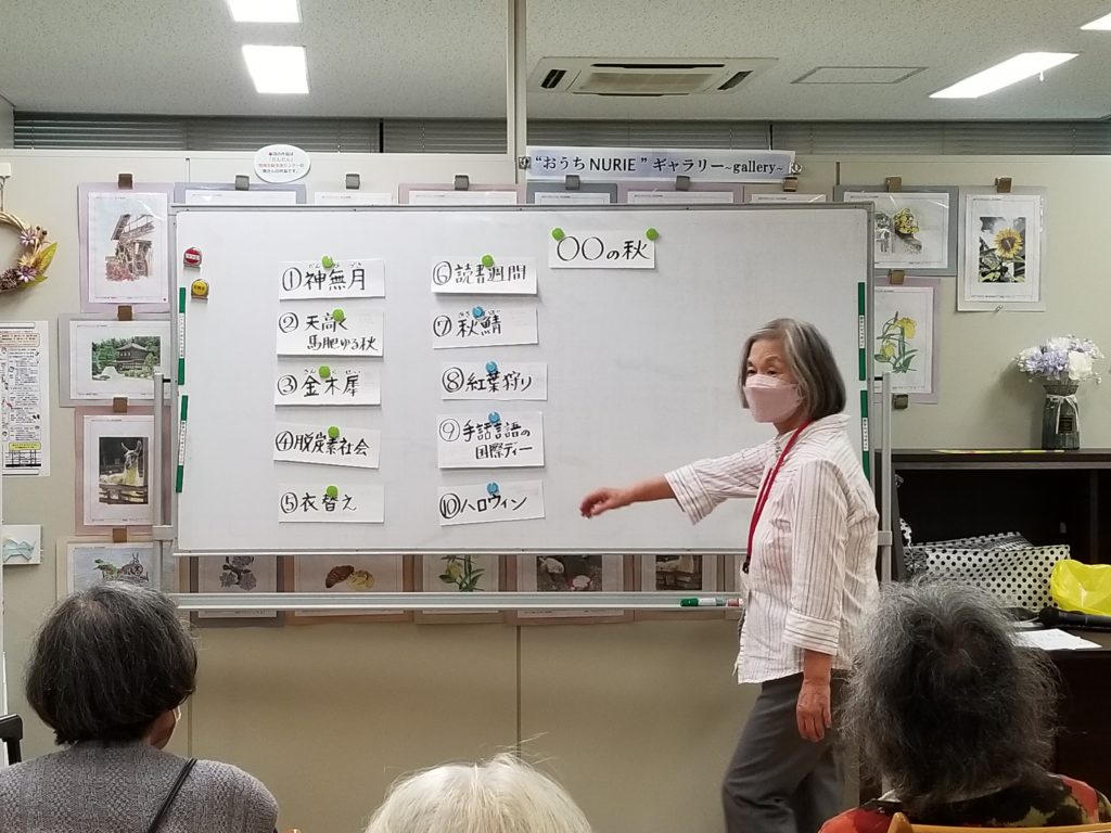 今日は「〇〇の秋」の〇〇に入る言葉を考えることから。渡部さんの代わりにスタッフの飯島さんが担当します。「食欲の秋」「行楽の秋」「スポーツの秋」「読書の秋」「収穫の秋」など、いろいろ出てきました。いろんな秋を楽しんで、充実した秋を過ごせるといいですね。