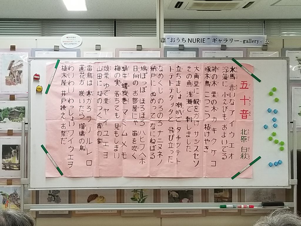 次は、北原白秋の「五十音」と宮沢賢治の「雨ニモ負ケズ」を音読しました。