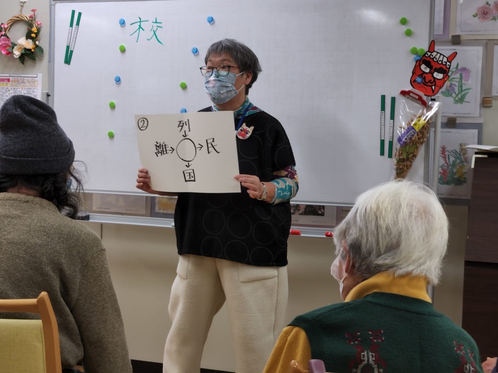 次に漢字パズル。いつも参加して下さるFさんが「ハイ」と手を上げて素早く正解され、皆さんに拍手をもらっていましたよ。