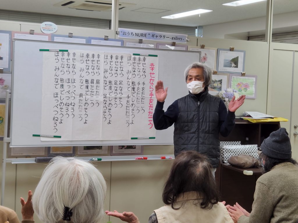 後半、加藤さんによる音楽レクリエーション。「とんがり帽子」をまずは普通に歌って、2回目は身体を動かしながら歌います。