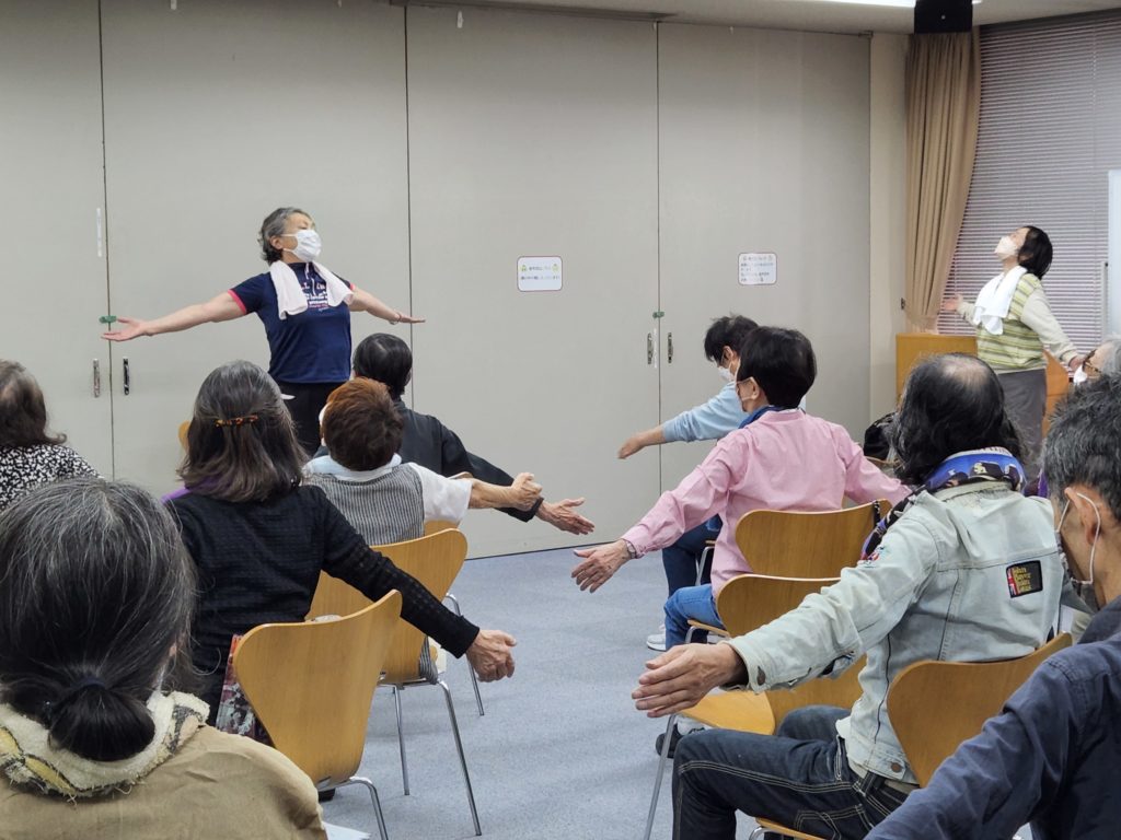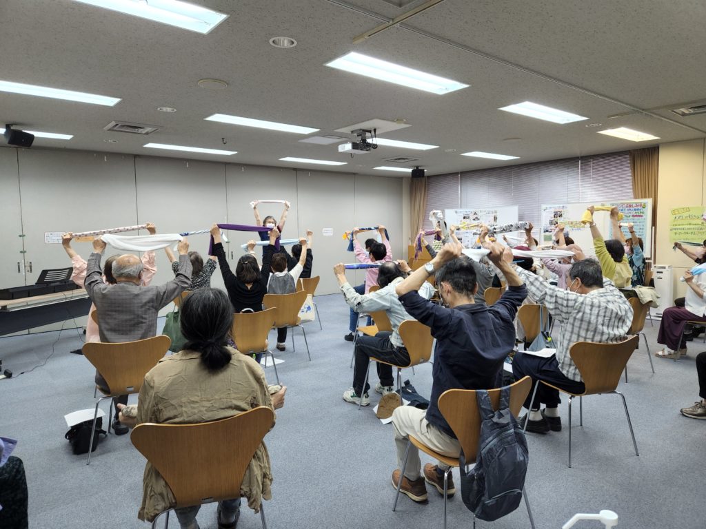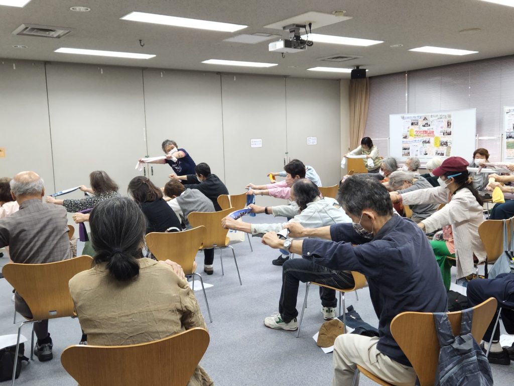 今日の前半は、井川さんによるタオル体操。タオルを使って身体を動かすことで身体がストレッチされてスッキリします。