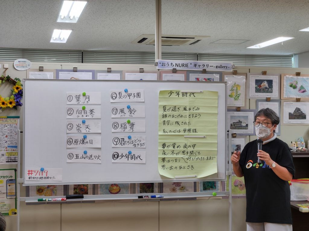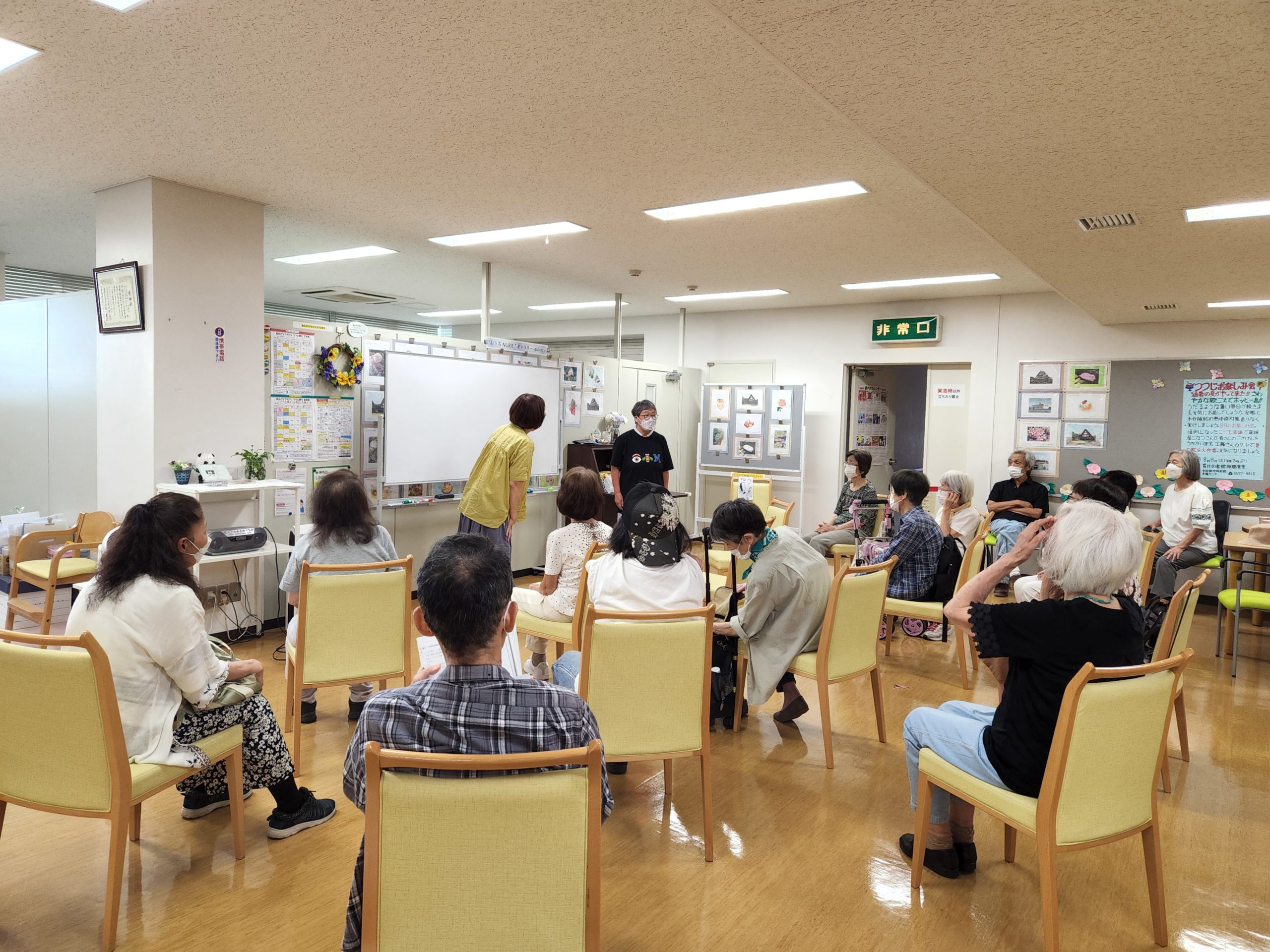 今日は、加藤さんの「歌いながら身体を動かしながら脳トレ」は「あんたがたどこさ」「浜辺の歌」「真っ赤な太陽」「われは海の子」の4曲。楽しく頭と身体を動かしました。