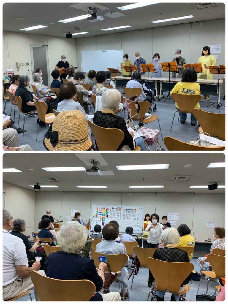歌声交流は、パワカレ仲間のだんだんさんが登場。ハンドベルで美しい演奏で、手遊びなど楽しみました。最後は参加者の皆さんもハンドベルを持って演奏しました。